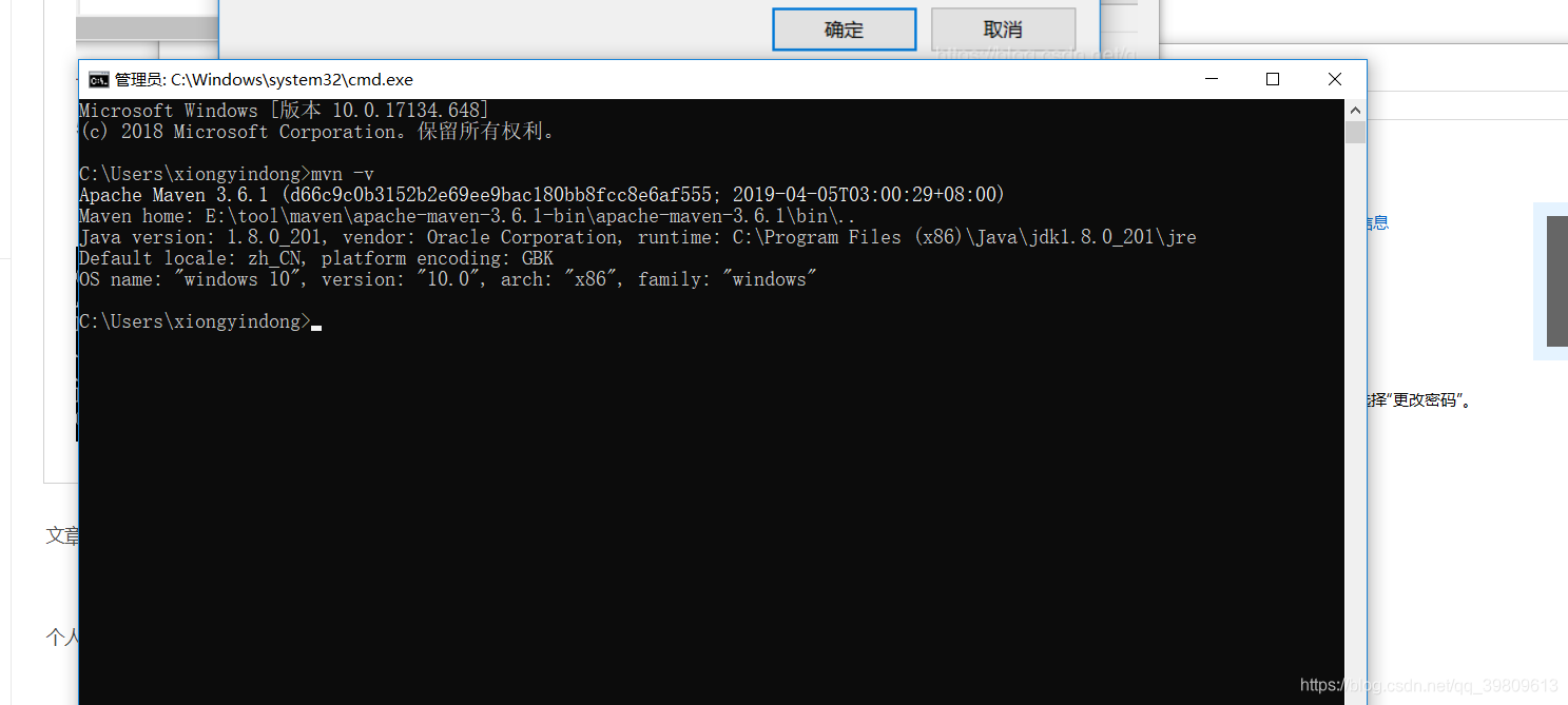 5. 至此,maven已经完成了安装,我们可以通过DOS命令检查一下我们是否安装成功: