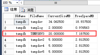 面对这种情况,就需要对tempdb中tempdev3这个文件进行收缩,在收缩前,需要确保此文件里不会有临时表等临时文件,因此需要将这些全部删除之后再进行收缩,收缩脚本: