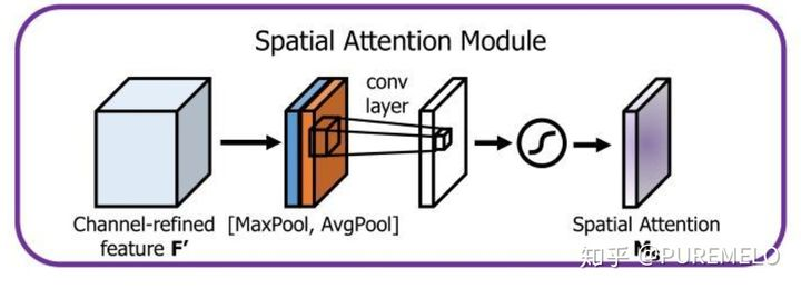 SAM模块与SE模块不同,它关注于空间注意力。具体做法类似于SE,只不过是对特征图进行通道维度的池化压缩,之后进行一次卷积操作与sigmoid激活函数得到空间权值图,再将该权值图乘回原特征图,就得到了赋有注意力的特征图。思想与SE一样,通过全局信息抑制无用的区域、加强重点区域,从而提升性能。