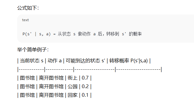 状态转移概率是指:当你在某个状态下采取某个动作后,会“有多大概率”进入另一个状态