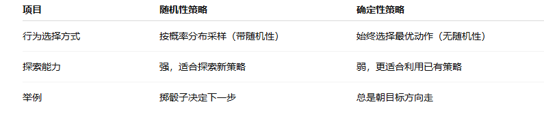 随机性策略是基于当前状态输出概率,选择概率最大的动作输出;