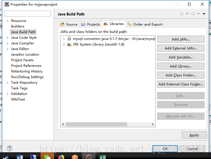 环境配置(1)下载并且解压 (2)点击目标项目-->顶头菜单project->Properties->java Build patehàLibraries->Add Variable JAR 添加进去你的数据库驱动所在的路径