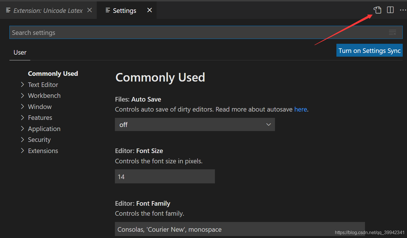 点击右上角的Open Settings(JSON)