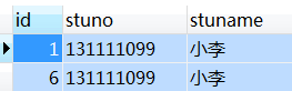 从插入记录上看,id为1、5、6的记录学号都是相同的,那么验证一下查询的数据是否正确
