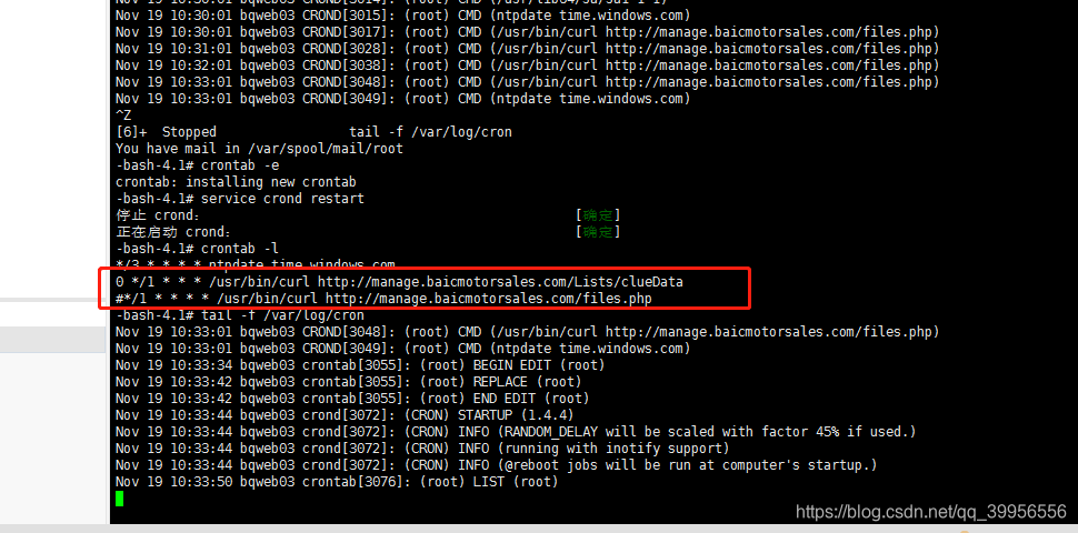 0 */1 * * * /usr/bin/curl http://manage.baicmotorsales.com/Lists/clueData 每一小时访问一次这个方法