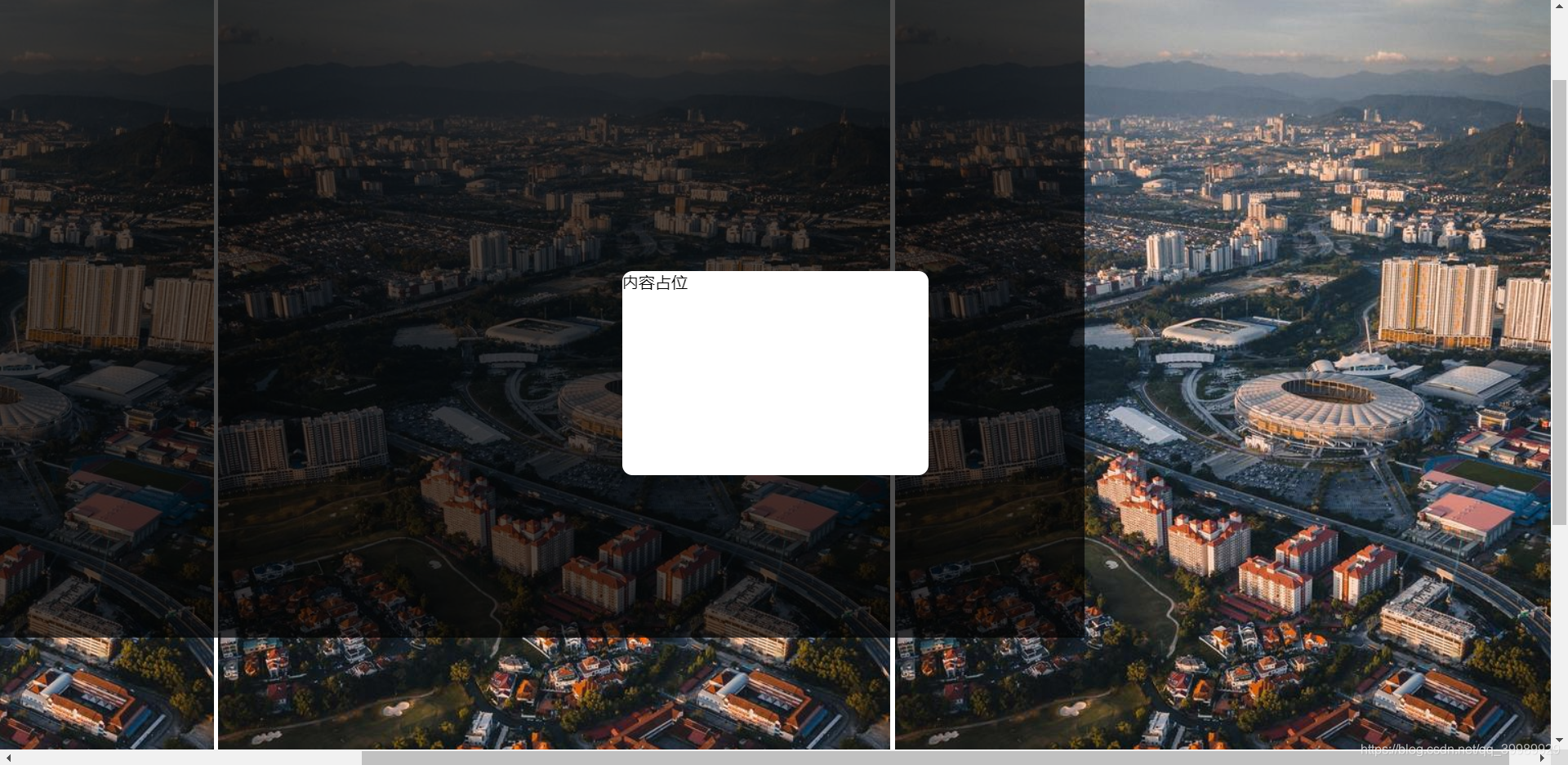 当使用格式化宽高覆盖一个半透明背景时,为.box设置position:absolute;发现其流动性只能适应浏览器最大视口,当为body设置大于视口的长度宽度时,半透明背景的流动性消失,表现如下: