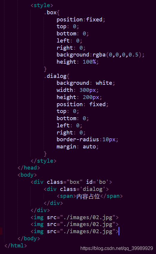 以上是模拟模态框时的源码。