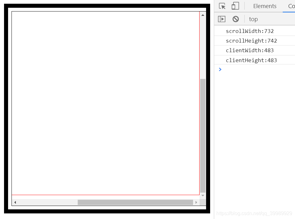 如下图所示,当内部内容为未超出时,ij项的值与clientWidth/Height的值相同;