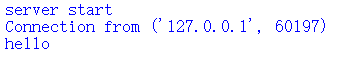 运行客户端程序,服务器调试窗口出现 Connection from ('127.0.0.1', 60197);