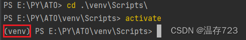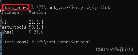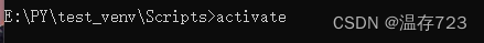 随后cd切换到E:\PY\test_venv\Scripts目录下执行: