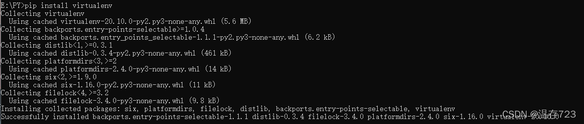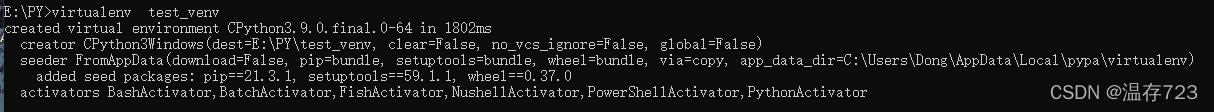 比如我在E:\PY创建名为test_venv的虚拟环境: