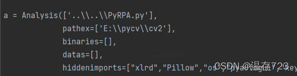 其实执行 pyinstaller -F xxx.py 后面跟的参数都会在xxx.spec体现,因此 pathex 段落对应的是"--path="这个参数,-w 对应的是xxx.spec 的 console = False ,其它的自己研究咯。
