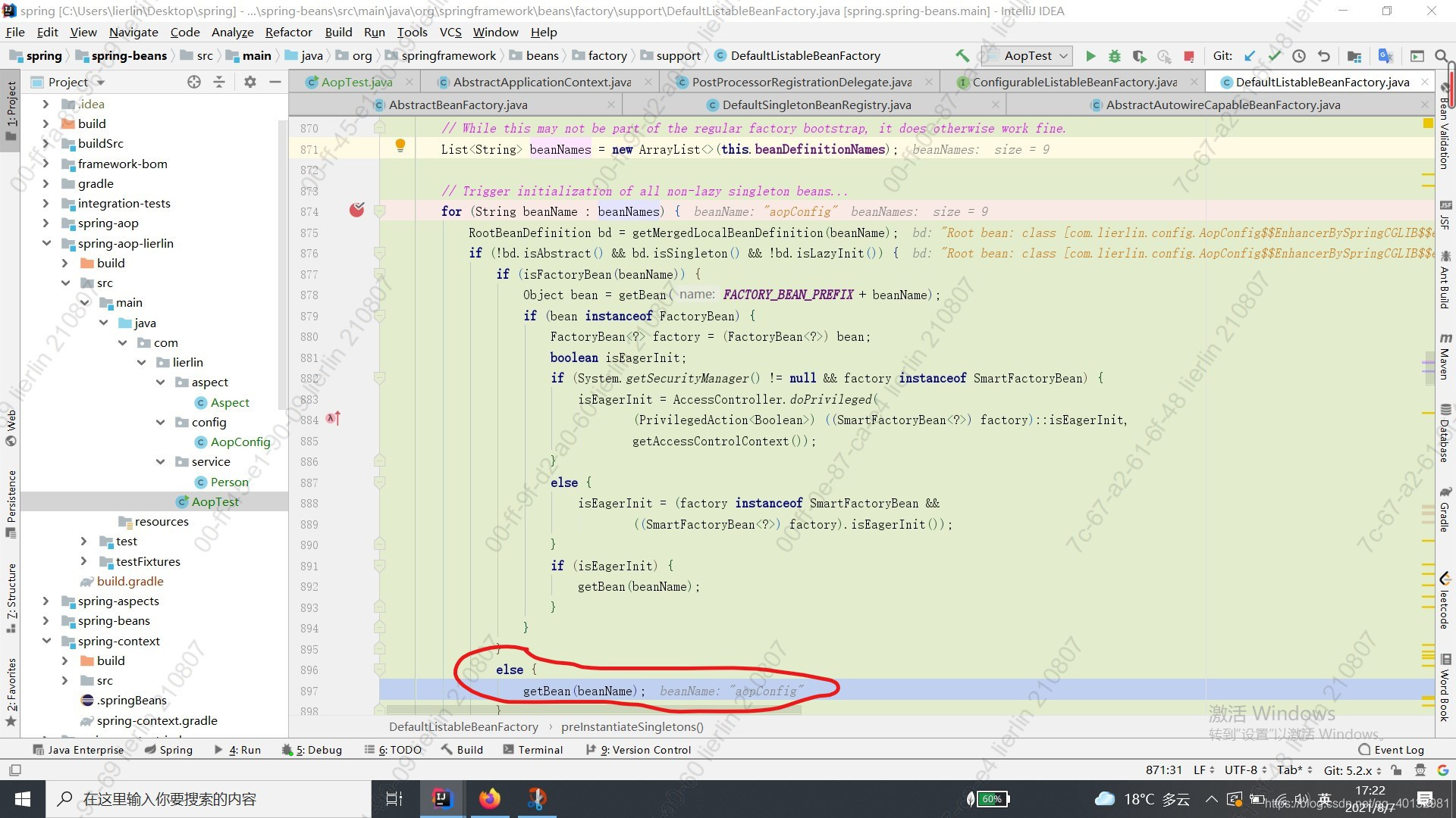 6、调用getSingleton()中的createBean()方法