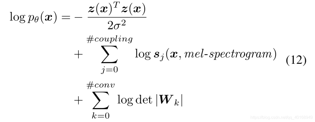 第一项是球形高斯的对数似然,经过可逆卷积和双射耦合之后对loss影响的变量的变化是后两项。sigma是球形高斯的方差