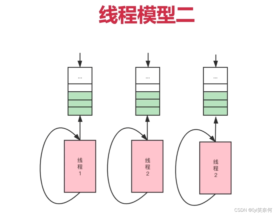 1.程序启动时就分配多个线程,每个线程都有自己的任务队列进行处理。如果任务队列全部处理完毕就进入休眠状态。
