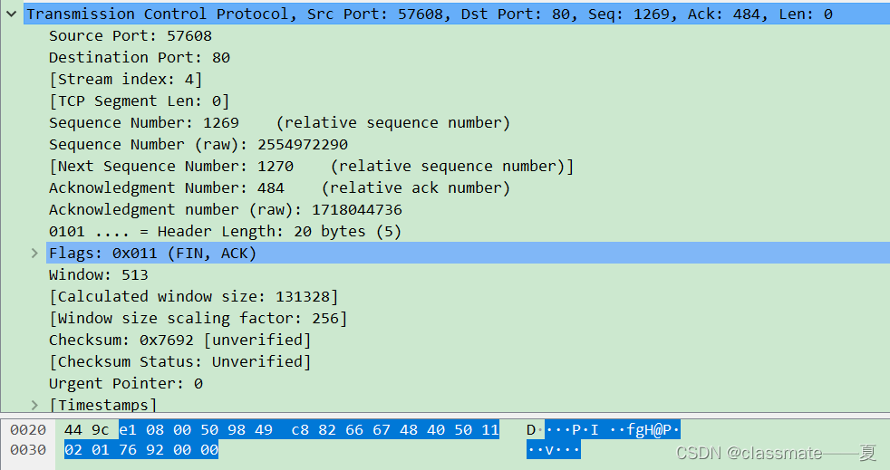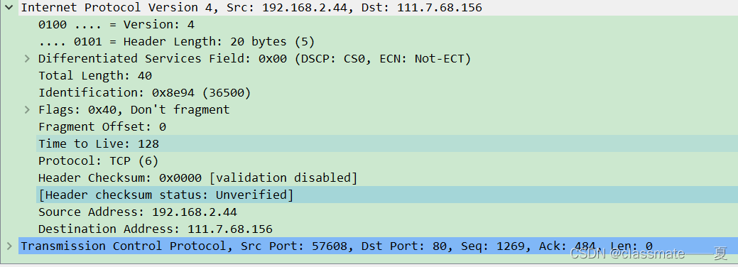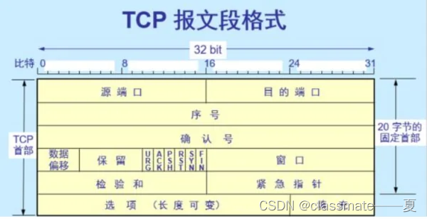 1、TCP头部长度为20字节: