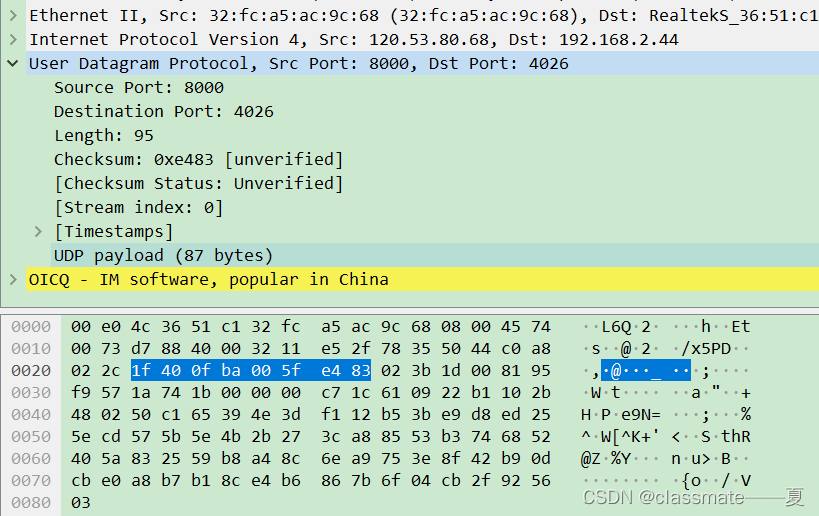 2、UDP头部8个字节