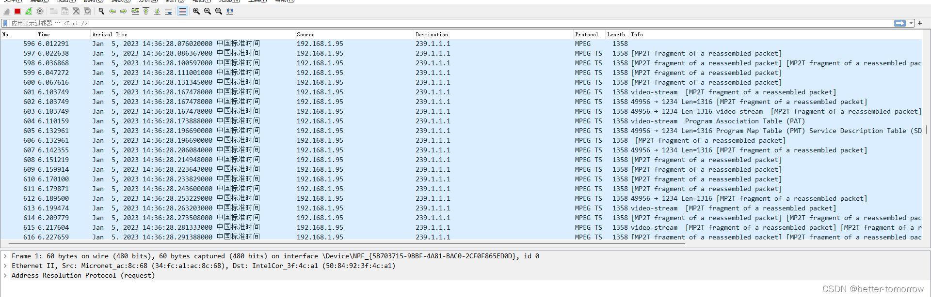 (3)使用wireshark进行推流抓包