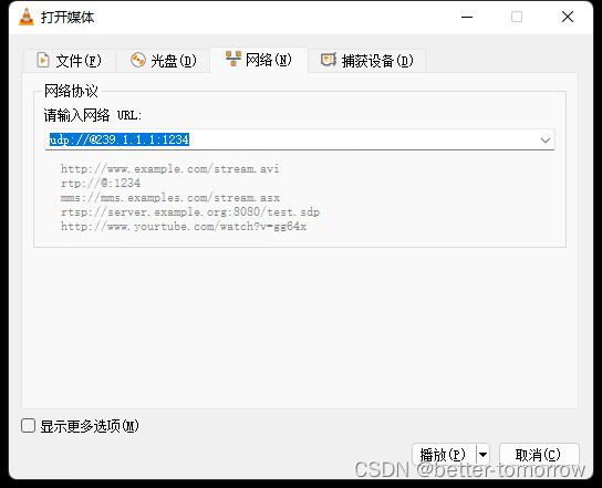 (2)、加入组播地址,点击播放