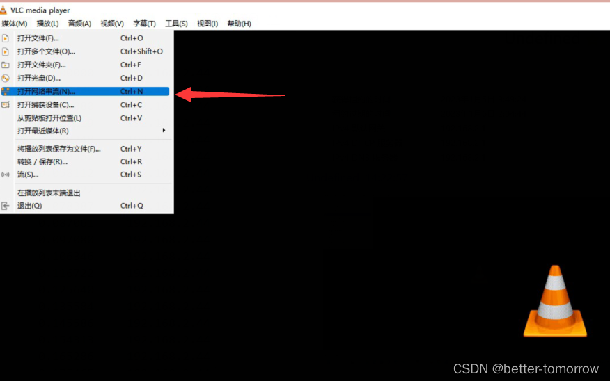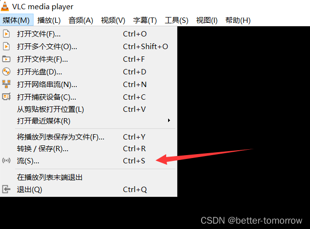 (1)打开VLC,打开流