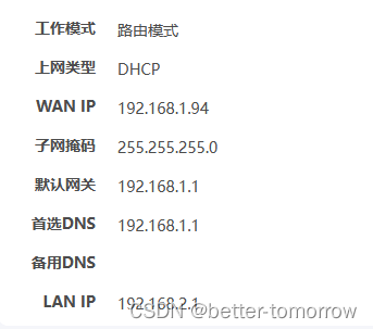 (1)、PC1与WIFI6路由器WAN处于同一网段内、AP处于路由模式。