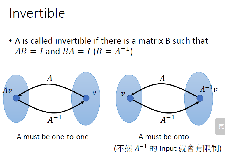 所以如果一个矩阵可逆,那么它必须同时是单射和满射