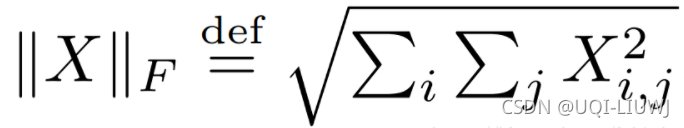矩阵A的Frobenius范数定义为矩阵A各项元素的绝对值平方的总和开根,即