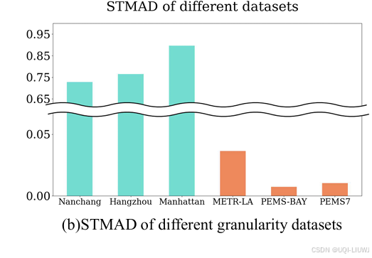 - 因此,如图1(b)所示,细粒度的交通数据是非平滑的,我们在本文中定义了一种新的评估指标,称为时空平均距离(STMAD)。