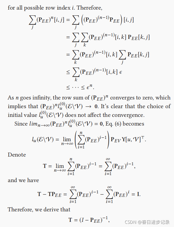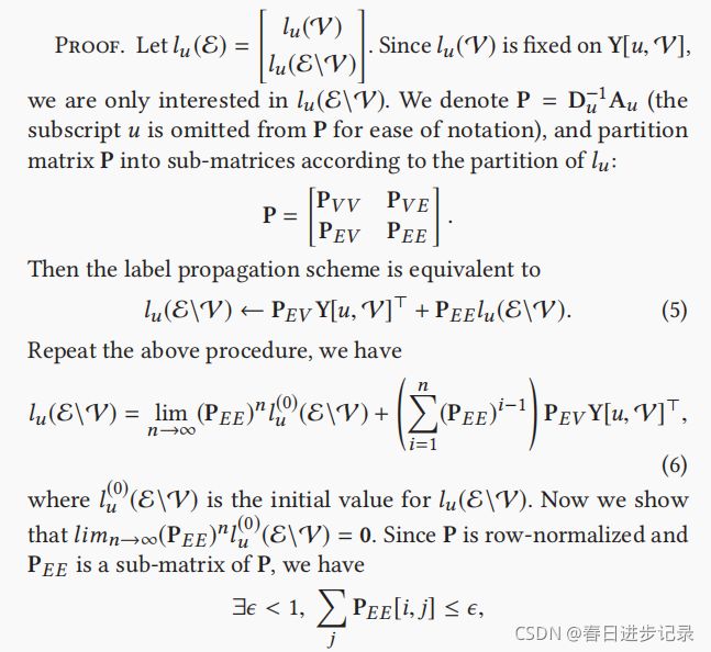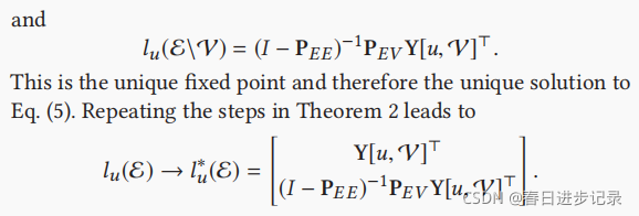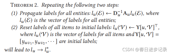 (看不懂没关系,只要知道)这表明,每个非项目实体ei∈E\V处的l∗u值是其相邻实体的平均值,这导致了以下标签传播方案