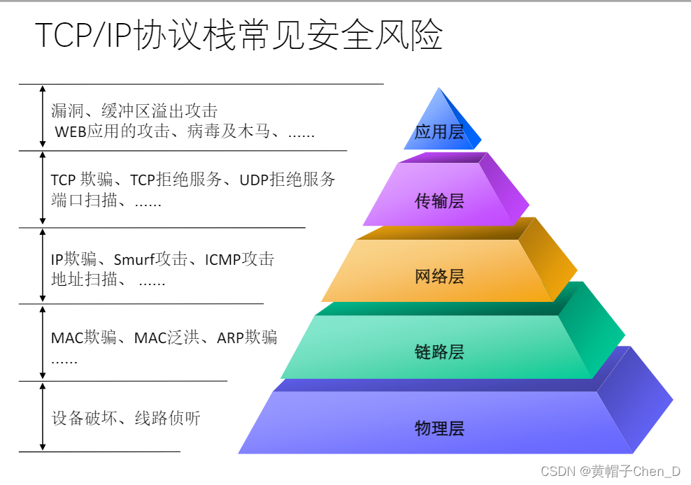先行的TCP/IP协议是不安全的,是一个千疮百孔的协议模型,可以说,我们现如今互联网中遇到的绝大多数的安全问题,皆是因此而成的。因为TCP/IP协议是互联网的根基,所以一个如此脆弱的根基,就带来如今脆弱的互联网甚至是物联网。