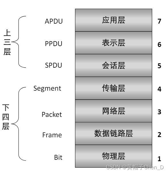 OSI模型共分为七层,每一层垂直方向提供服务,水平方向进行通信