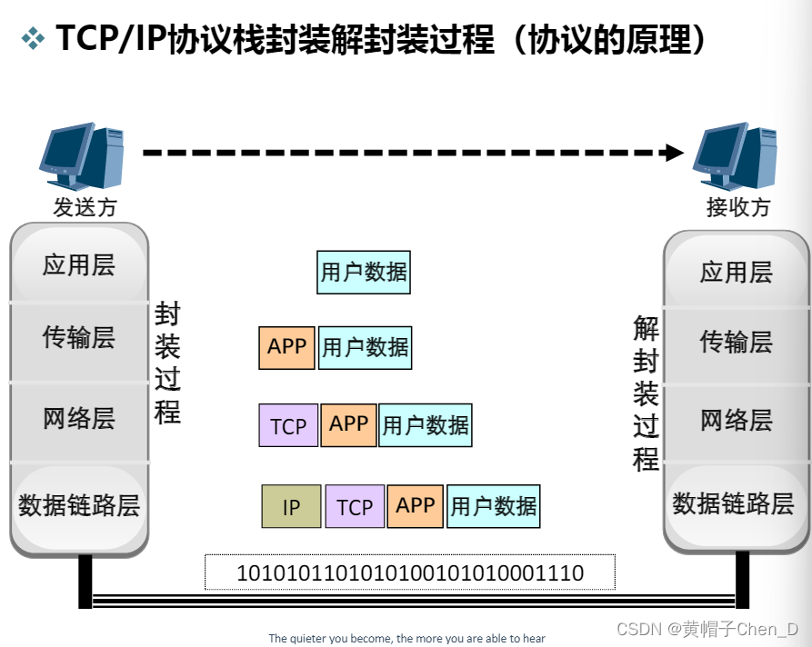 TCP/IP的工作原理实际上是封装与解封装的过程,发出数据时是封装过程,收到数据的时候,是解封装过程。