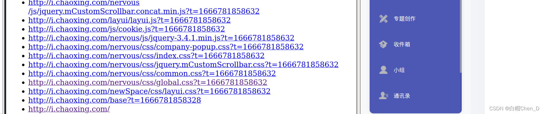 看到很多链接,随便点一个看到这些东西,因为这些链接都是中间过程不是网页,我们找到刚才用靶机登陆的域名