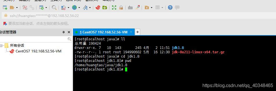 e) 进入jdk文件夹,获取目录绝对路径(我的绝对路径是:/home/huangtao/java/jdk1.8):
