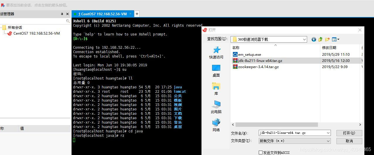 rz #使用rz命令将jdk压缩包从window导入centos当下目录java中