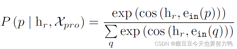 其中,ein( p )是p这个prompt经过文本Transformer的编码结果。这个公式是评估主客体的视觉区域和主语-谓语-宾语这种形式的prompt的余弦相似度,然后做了一个softmax。q是所有填充完的prompt。