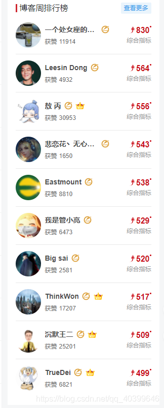 如图CSDN的周排行榜(不知道博主我什么时候可以上榜,嘻嘻):
