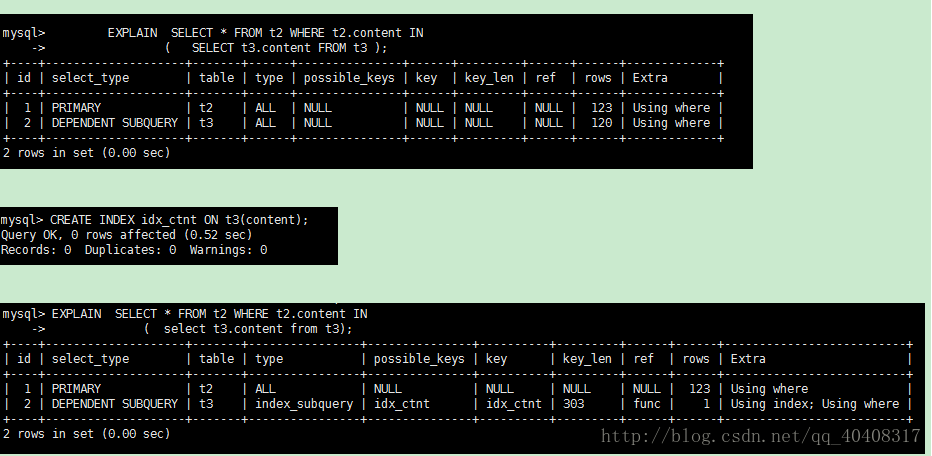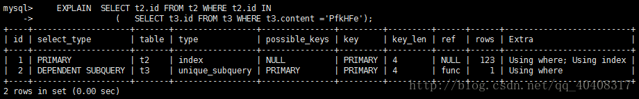 利用索引来关联子查询,不再全表扫描。unique_subquery