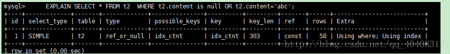 对于某个字段既需要关联条件,也需要null值得情况下。查询优化器会选择用ref_or_null连接查询。index_subquery