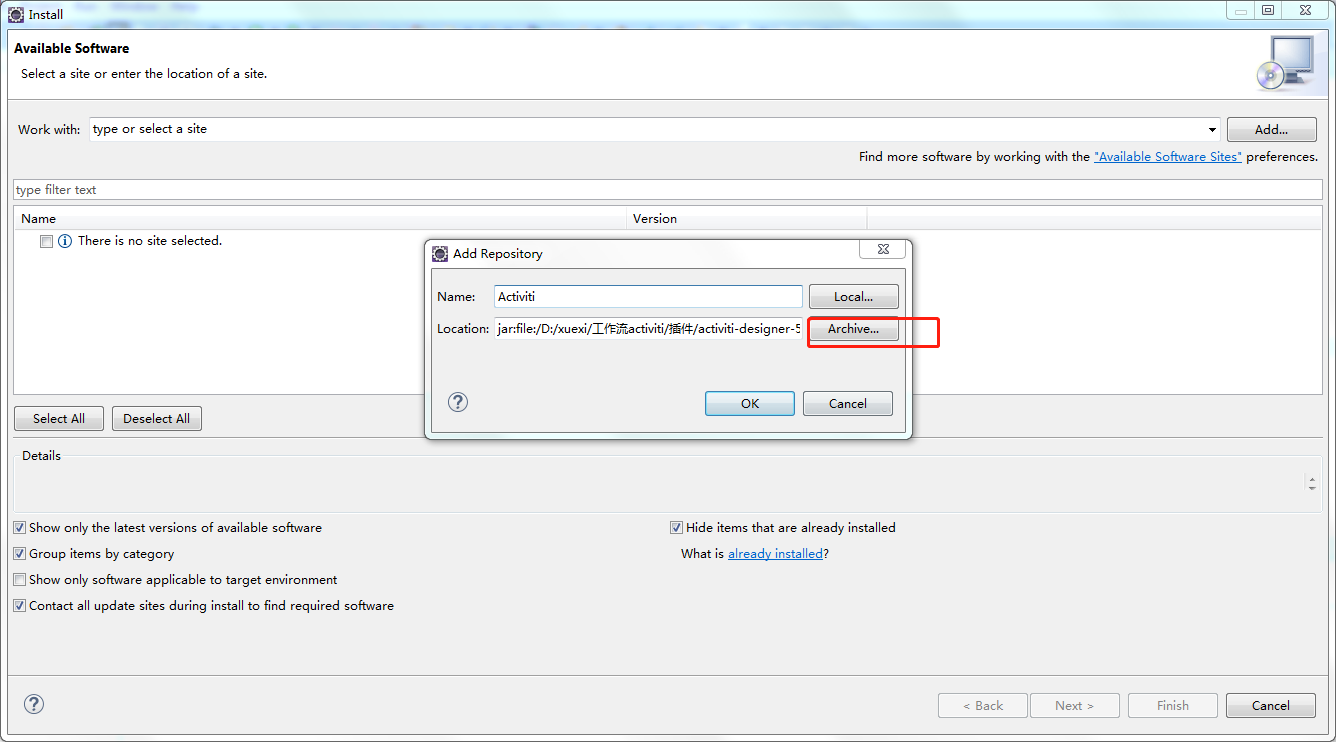 下载离线安装包(在线安装始终失败,应该出于网络限制),地址:http://www.activiti.org/designer/archived/activiti-designer-5.18.0.zip