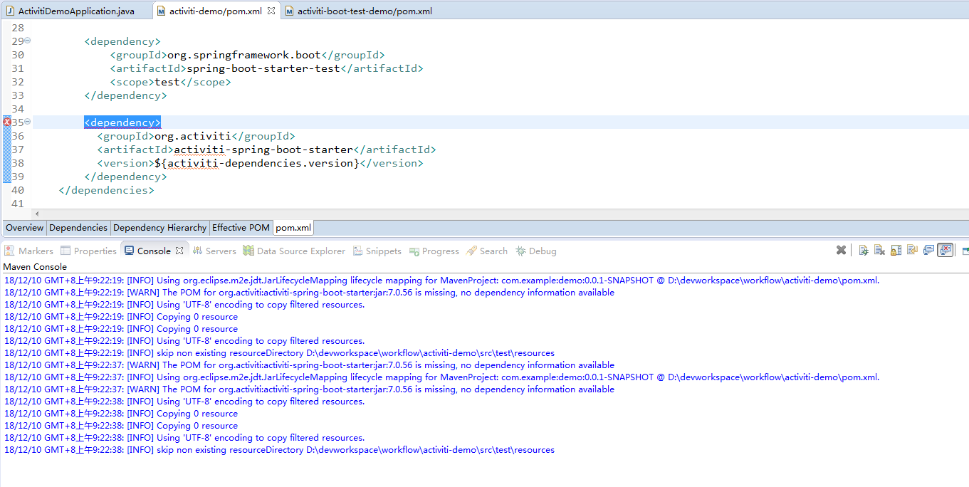 出现错误:Missing artifact org.activiti:activiti-spring-boot-starter:jar:7.0.56