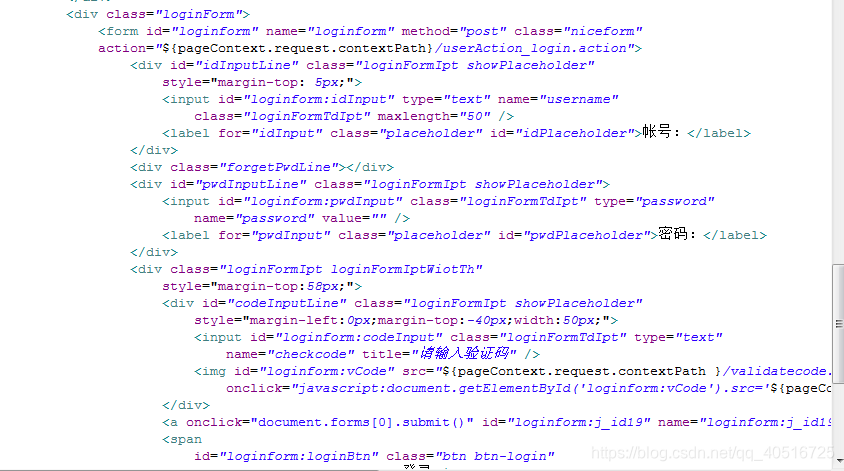 重点是加入一个<a>标签 点击登录,提交表单数据到action。οnclick="document.forms[0].submit()"