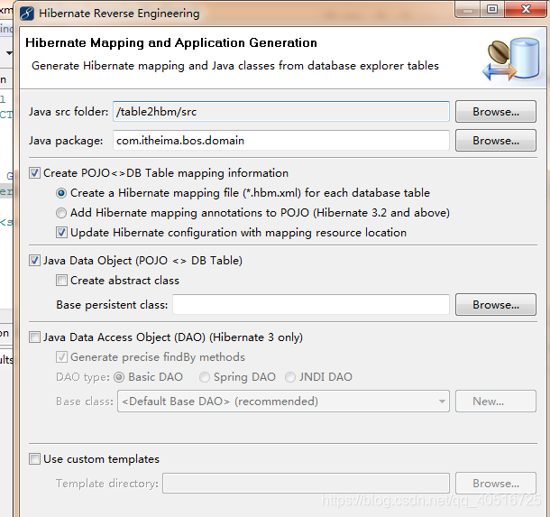 这一步的前提是hibernate 的jar包是myeclipse自带的。创建一个java项目 如table2hbm 然后右键项目名 -》myeclipse->生成hibernate