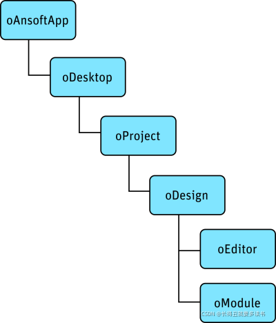 当你编写ANSYS Electronics Desktop脚本时,脚本的开头有一些标准命令,如下图所示。图表中的命令旨在定义脚本中 ANSYS Electronics Desktop 使用的变量并为变量赋值。变量用于以下层次结构。