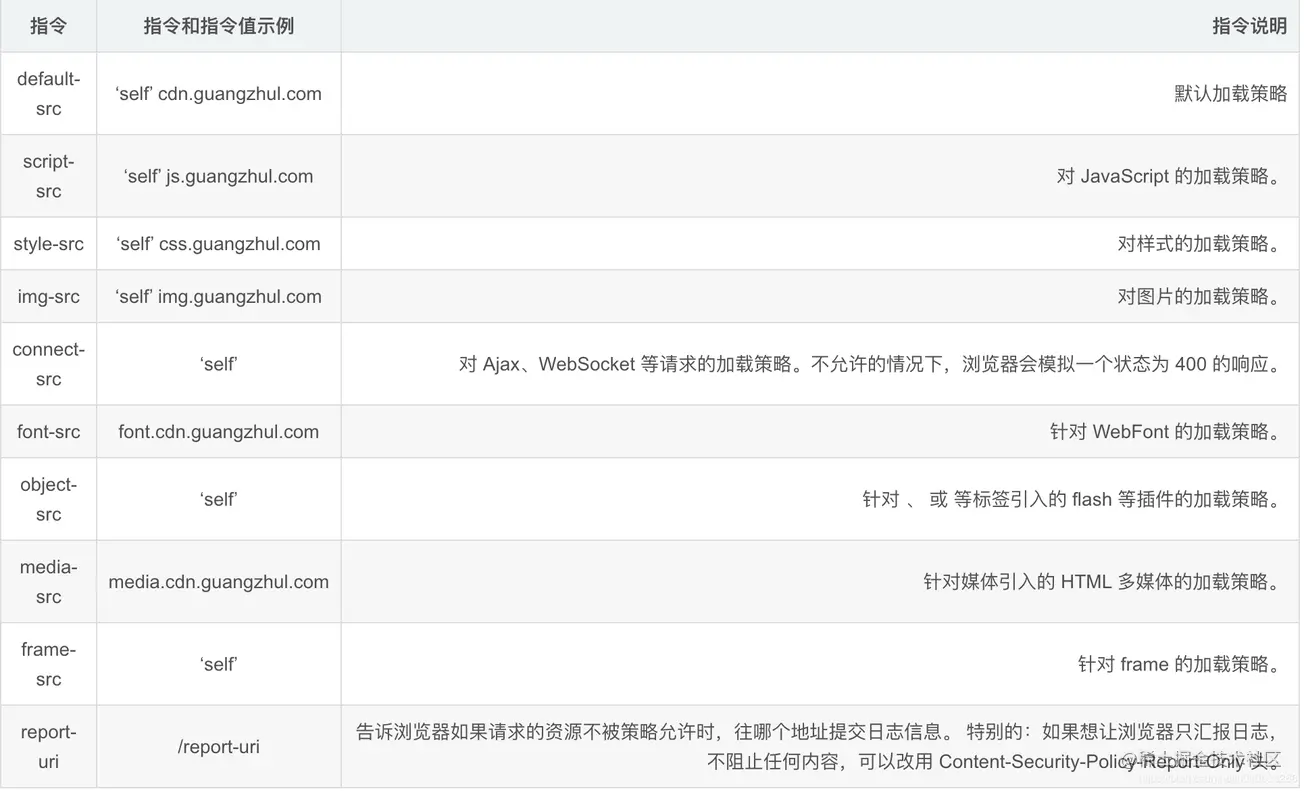 1、暴露了很多诸如 XSS 的安全问题,为了解决 XSS 攻击,浏览器中引入了内容安全策略,称为 CSP。