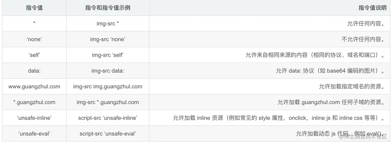 <meta http-equiv="content-security-policy" content="策略">