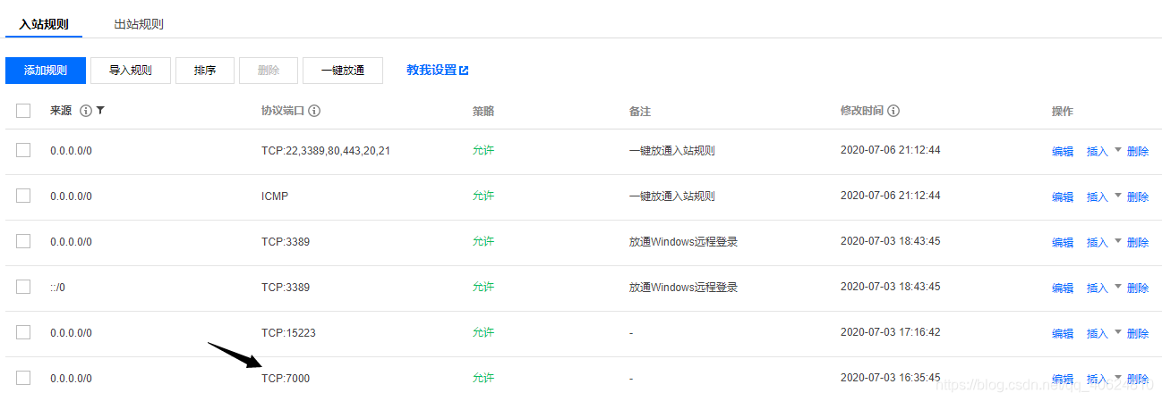 注意:要在腾讯云安全组里设置规则放行7000 端口,否则连接无法建立