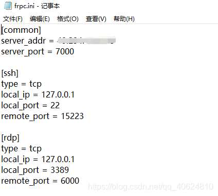 编辑frpc.ini: