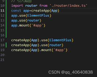 只说自己遇到的情况:createApp(App)多次使用导致前面的路由和ui被顶替掉了。