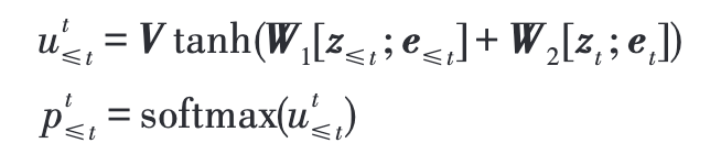 关系类型的嵌入向量和注意力向量作为下一时刻 t + 1 的输入,t + 1 时刻的输出向量通过前馈神经网络后采用复制机制从原句子中复制